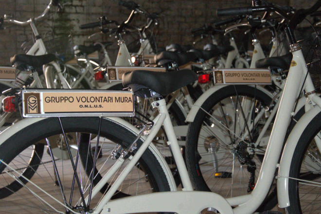 Il Gruppo Volontari Mura mette a disposizione delle funzionali biciclette (citybike senza pedalata assistita) noleggiabili da un’ora a tutta la giornata.