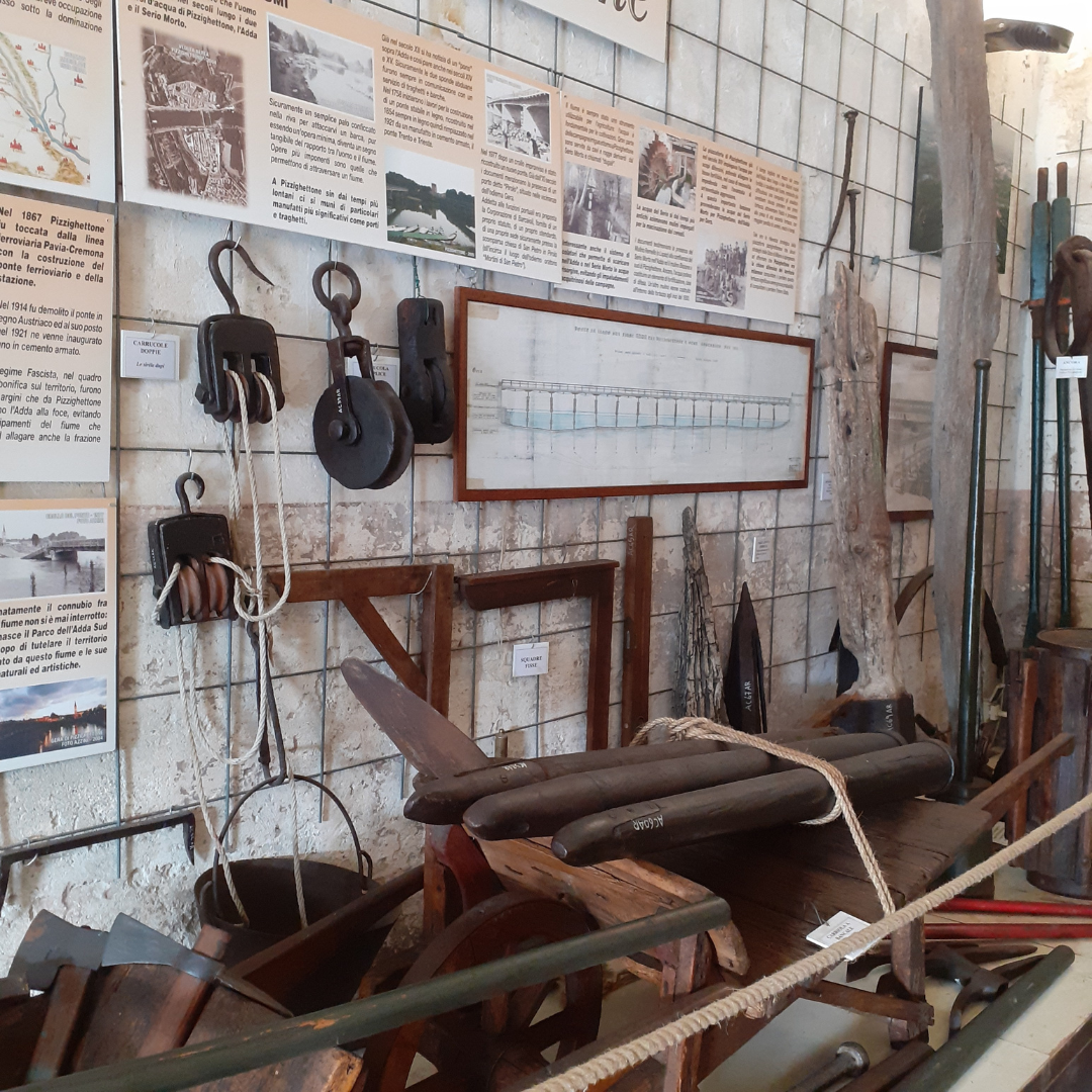 Moltissime sono le opere che l'uomo ha costruito nei secoli lungo i due corsi d'acqua di Pizzighettone, l'Adda e il Serio Morto. Persino un semplice palo conficcato nella riva per attaccarvi una barca, pur essendo un’opera minima, diventa un segno tangibile del rapporto tra l’uomo e il fiume. Opere più imponenti sono quelle permettono di attraversare un fiume. A Pizzighettone sin dai tempi più lontani ci si munì di particolari manufatti come porti e traghetti.