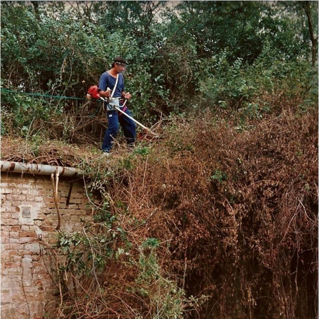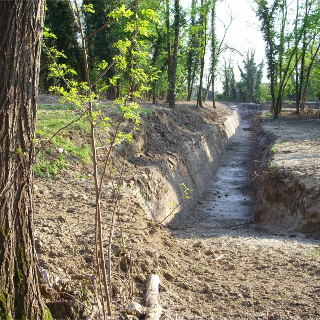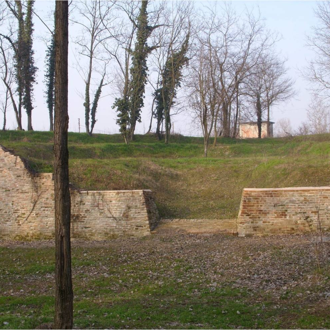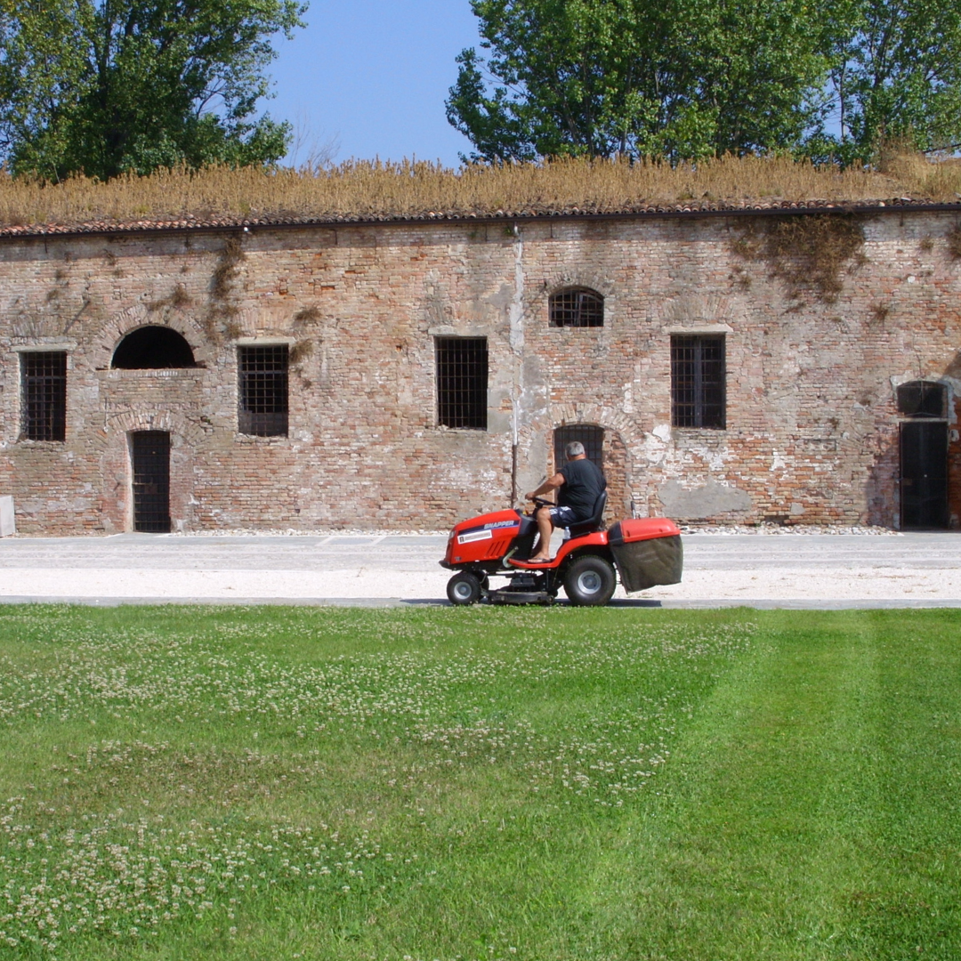 Sul bastione terrapienato, spalti e strada coperta invece si è proceduto ad estirpare completamente l'apparato radicale di robinie e rovi in modo da creare un tappeto d'erba, senza impedimenti per il taglio rapido da effettuarsi poi con mezzi meccanici.